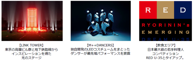 演出コンセプトは「LINK TOKYO 」。さまざまな光に照らし出された東京の魅力をつなぎ、その未来や幸せを世界に発信していきます。