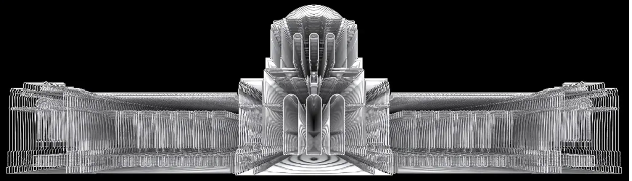 この「reshape」は、建物に映像を投影することでその外観を変える可能性を表すものです。プロジェクターの光を利用して、映像はバーチャルに形状を再形成することができ、プロジェクションで建物の見方、体験方法を変え、新しい解釈と文脈をもたらします。光が空間を変容させるように、映像によって建築を変容させる表現をします。そして、その体験を向上させるために、音声とアニメーションを同期させ、聴覚と視覚の両方の感覚を同時に刺激する作品です。