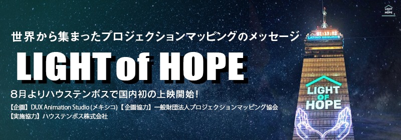 コロナ禍に世界中で話題を呼んでいるプロジェクションマッピングのメッセージ 【LIGHT of HOPE(希望の光)】 8月よりハウステンボスで国内初の上映開始!